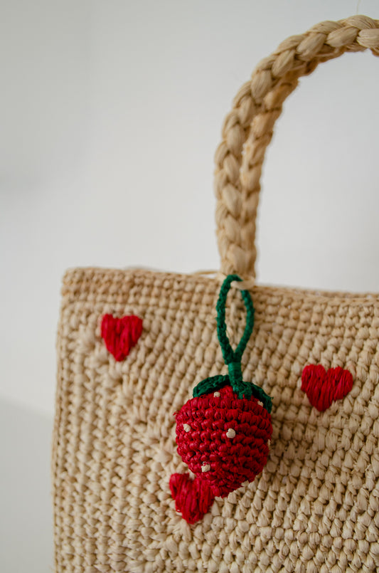 POCHETTE RAPHIA CROCHET - COEURS - NOIR